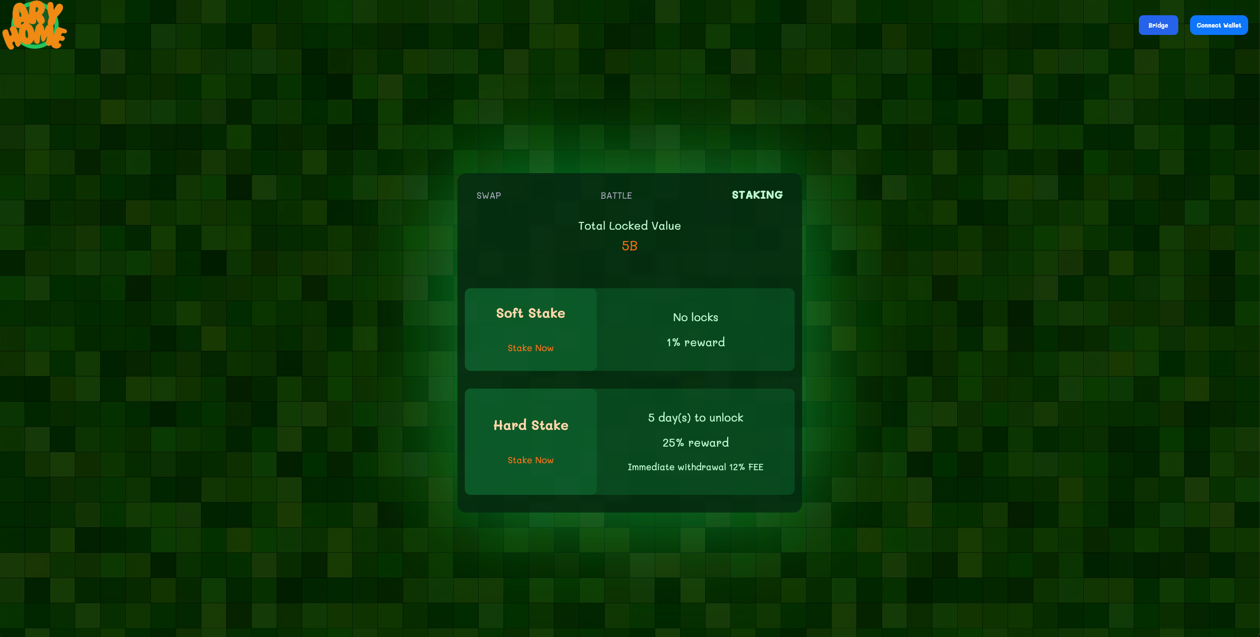Hard Stake: A fixed-rate stake with a 25% reward per month, backed by a 5-day unbonding period.