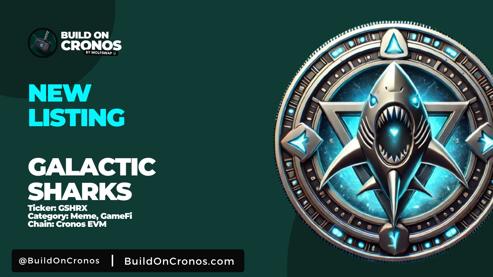 Galactic Sharks (GSHRX) is now listed on Build On Cronos, bringing a whole new level of excitement with its unique combination of digital collectibles, interactive gameplay, and marine memes!