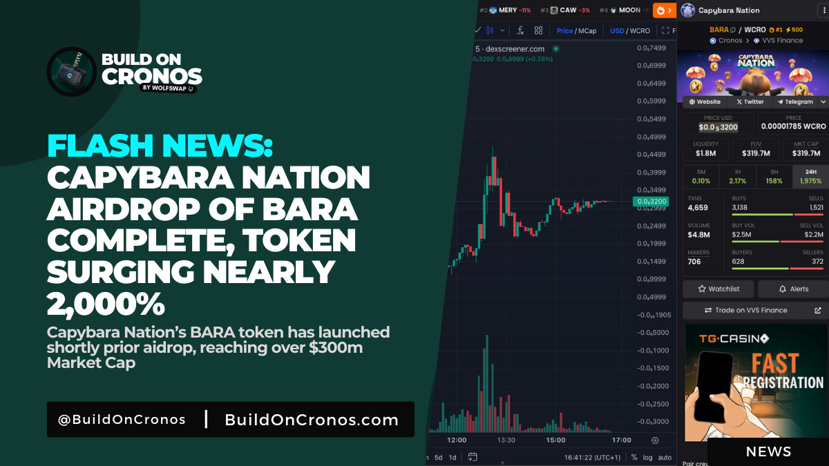 Capybara Nation’s BARA token has launched shortly prior aidrop, reaching over $300m Market Cap