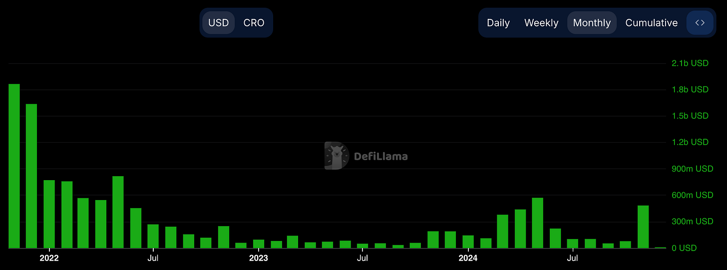 Although the November volume falls short of the ATH of $1.863B, recorded during Cronos’ golden era, the recent increase underscores renewed interest and activity on the chain.