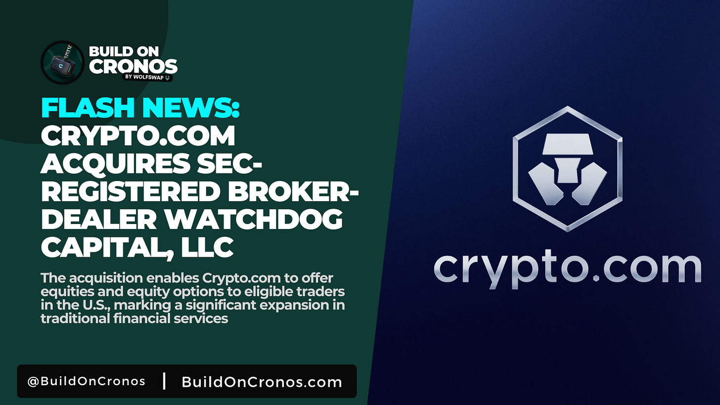 Acquisition Announcement: Crypto.com has acquired Watchdog Capital, LLC, an SEC-registered broker-dealer and a member of both FINRA and SIPC.