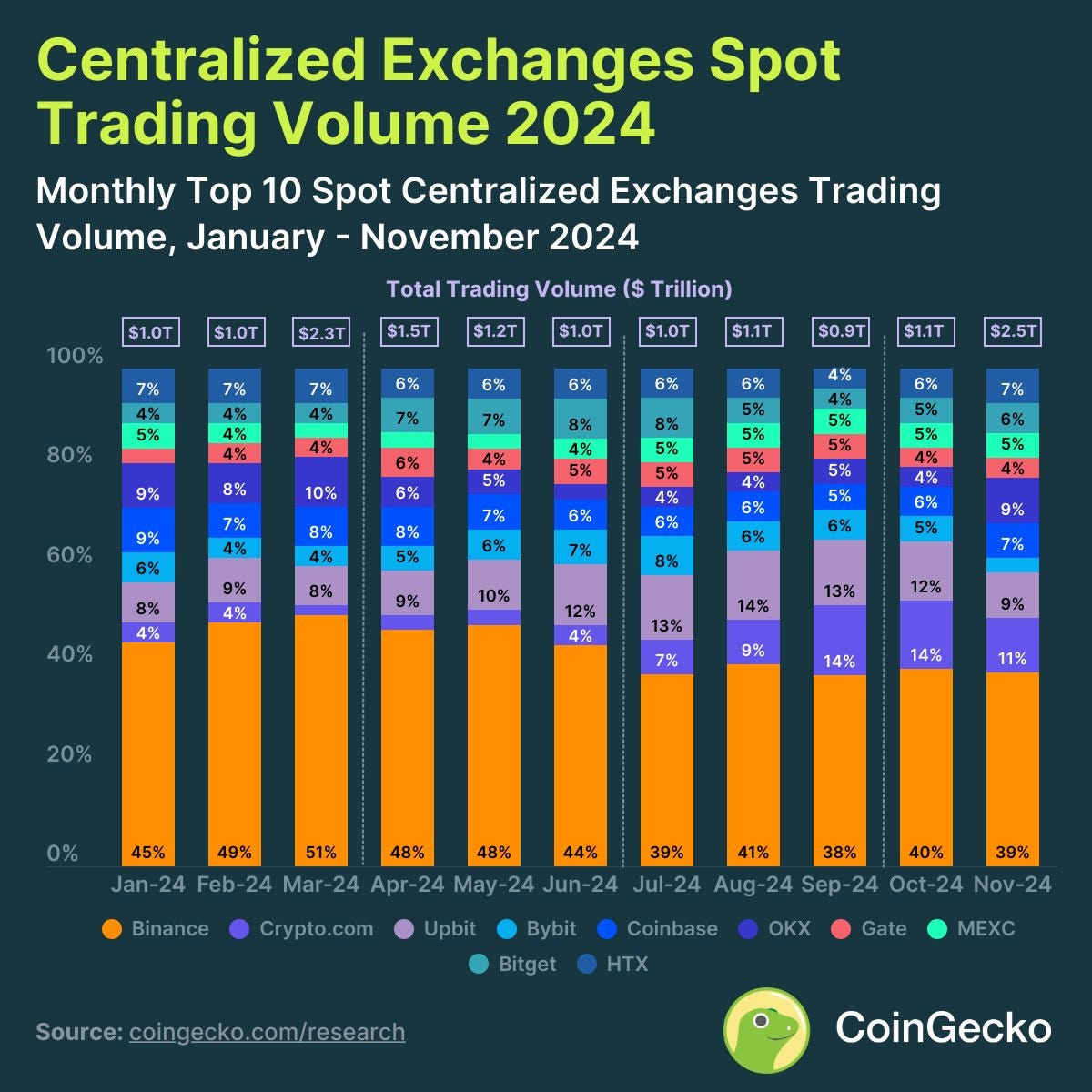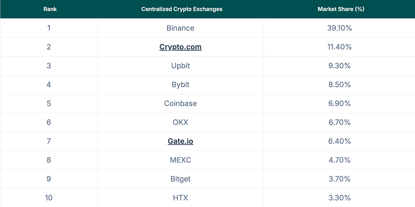 Source: CoinGecko Market Share of Centralized Crypto Exchanges, by Trading Volume
