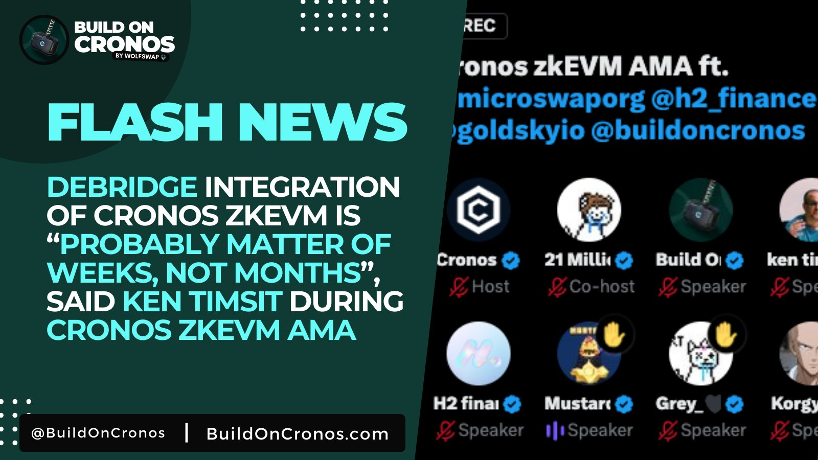 @deBridgeFinance integration with @cronos_chain zkEVM is expected to happen in "probably a matter of weeks, not months," according to @kentimsit during a recent Cronos zkEVM AMA. This development promises to enhance interoperability and expand functionality within the Cronos ecosystem.
