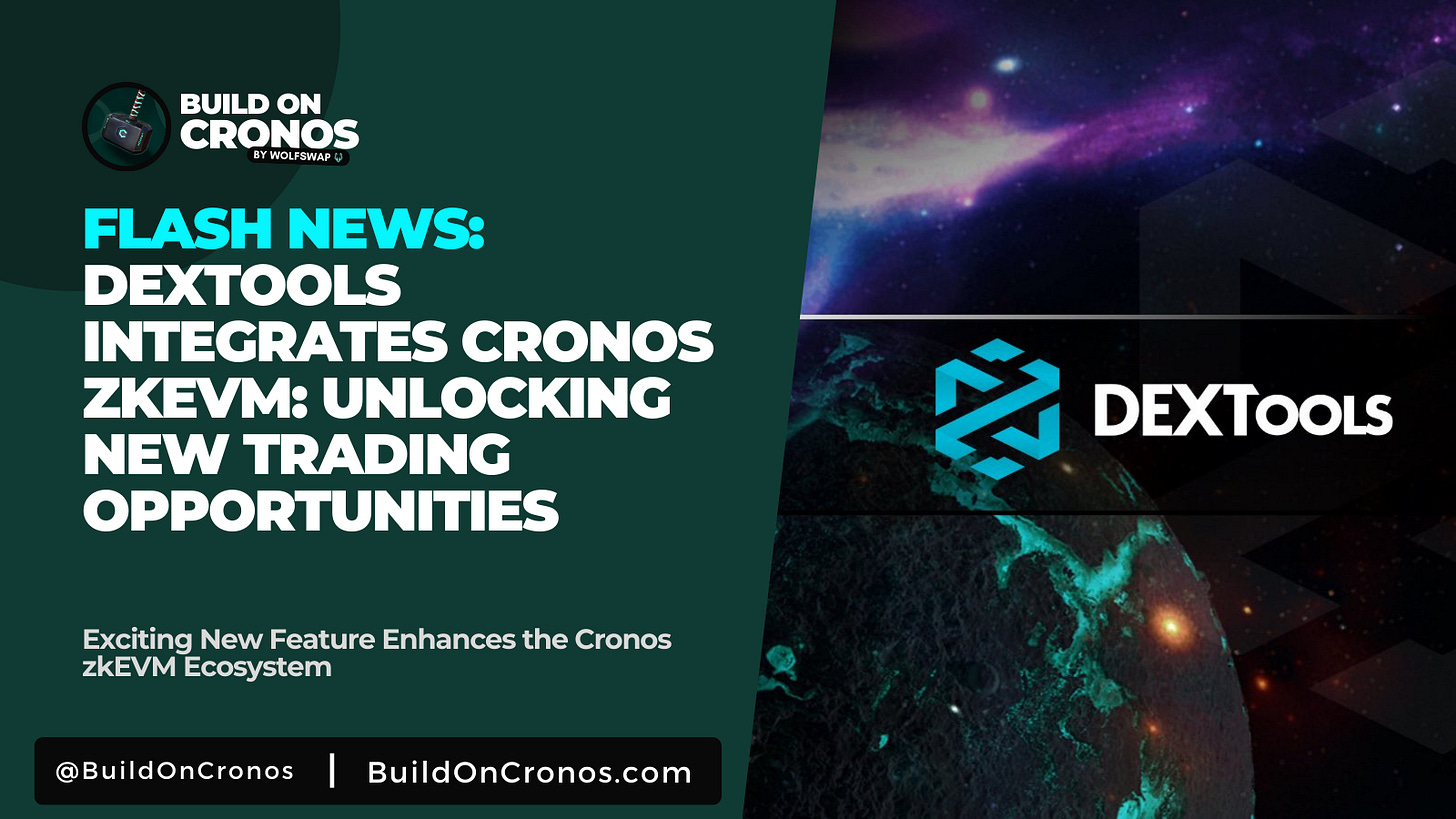 Integration Announcement: DEXTools users can now trade Cronos zkEVM tokens directly on the platform.