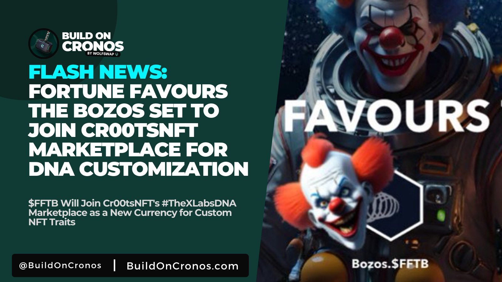 $FFTB (Fortune Favours The Bozos) is soon to take center stage as the partner currency in the Cr00tsNFT marketplace, allowing users to purchase various DNA variants in the groundbreaking #TheXLabsDNA platform. This marks a significant step for $FFTB, as it becomes an integral part of an innovative NFT customization ecosystem.