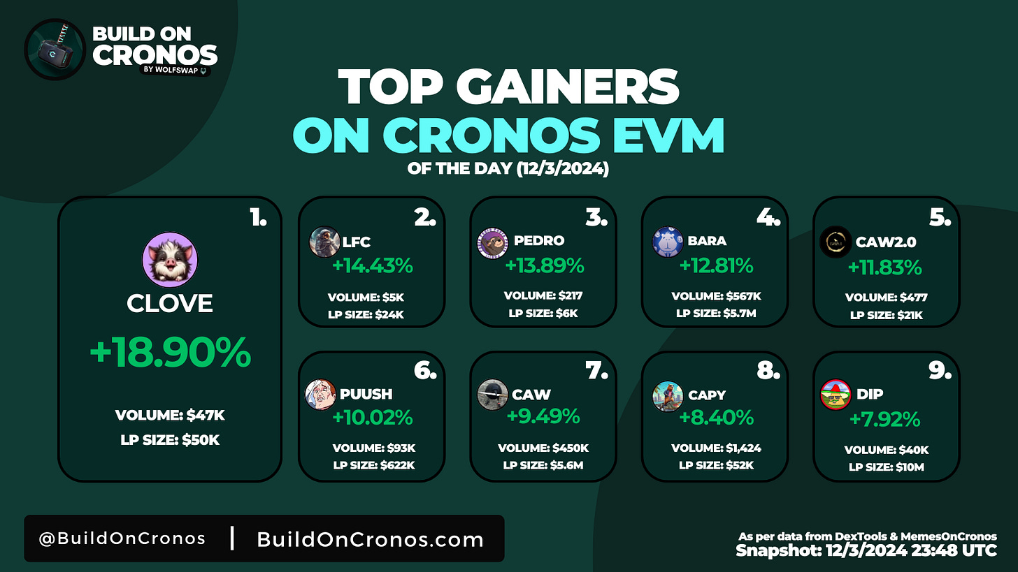 Top Gainers of Cronos EVM [12/3/2024]