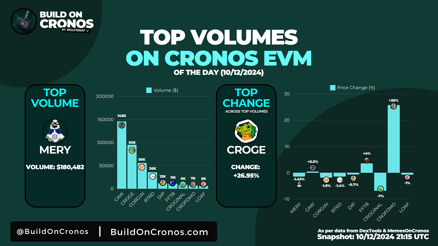 Top Volumes on Cronos EVM [10/12/2024]